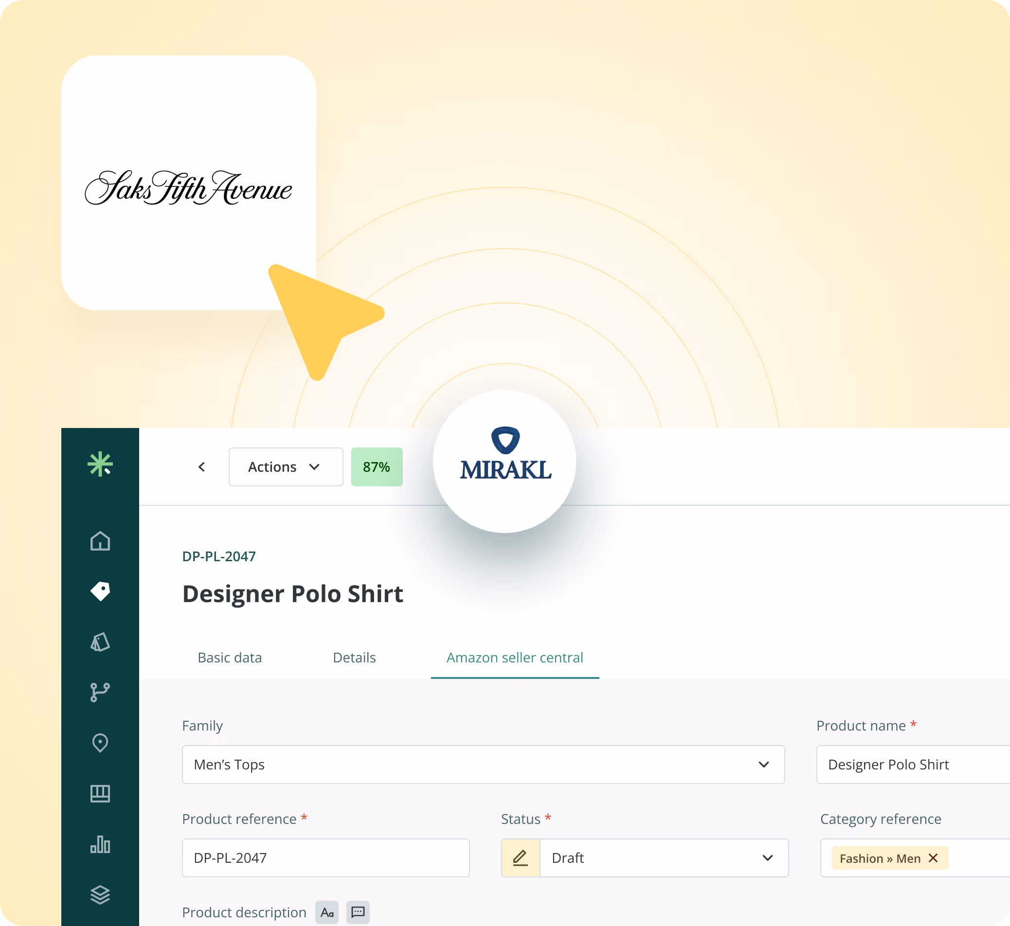 Sales Layer is the atelier for your digital data. The Saks Fifth Avenue connector (Mirakl-based) is designed for luxury brands, handling the nuanced data requirements of high-fashion retail with automation and elegance.